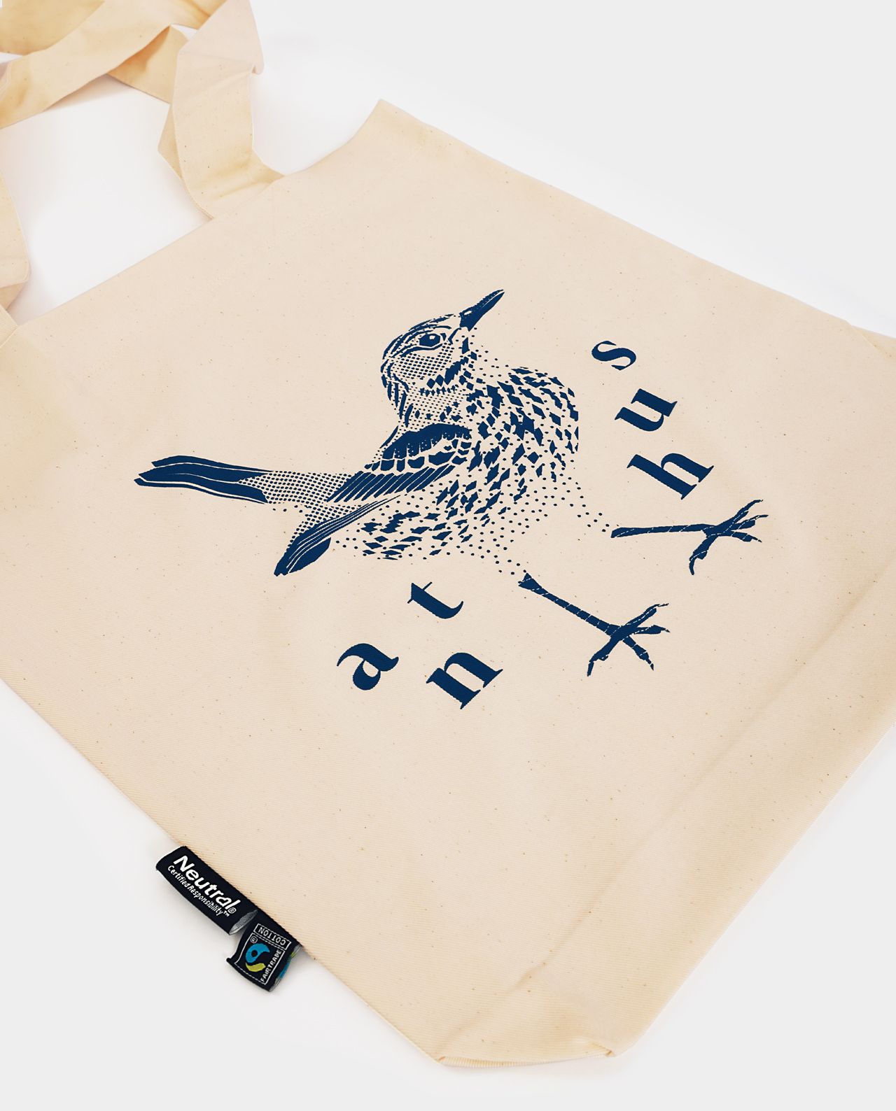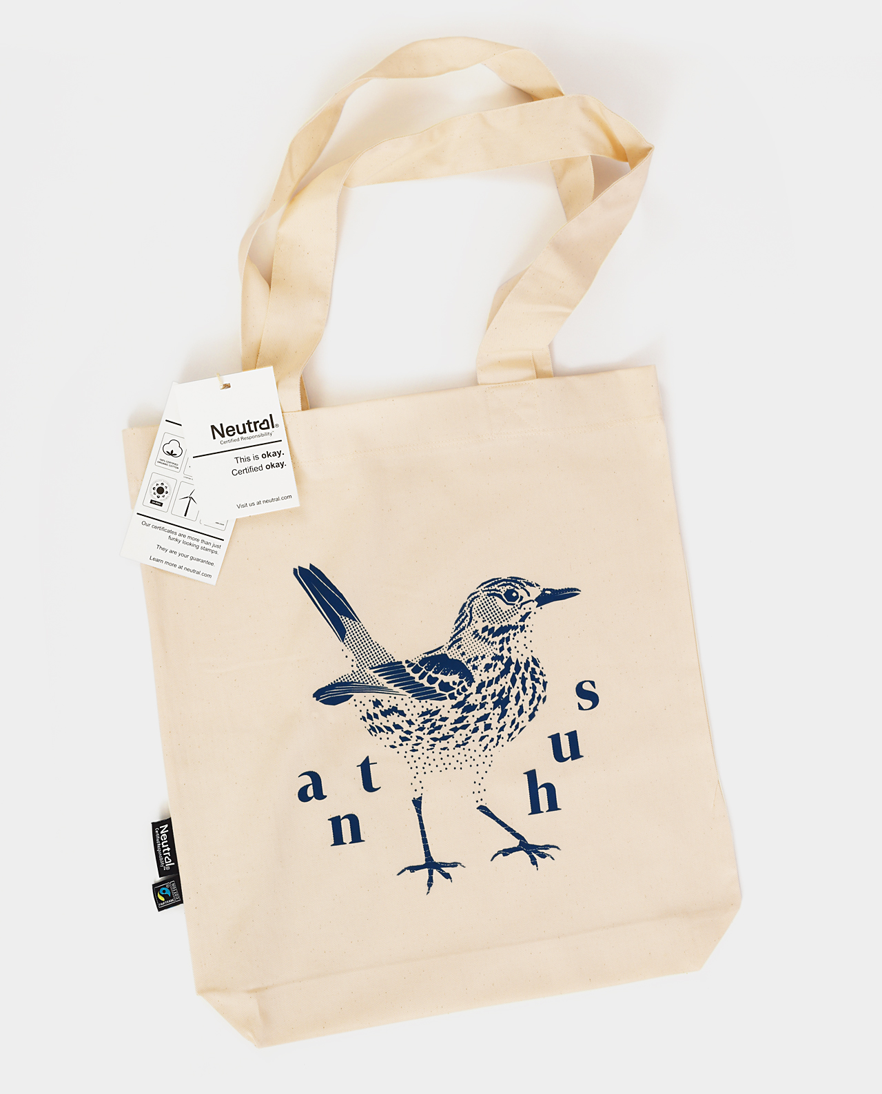 Taška s motivem lindušky luční, potištěná sítotiskem.