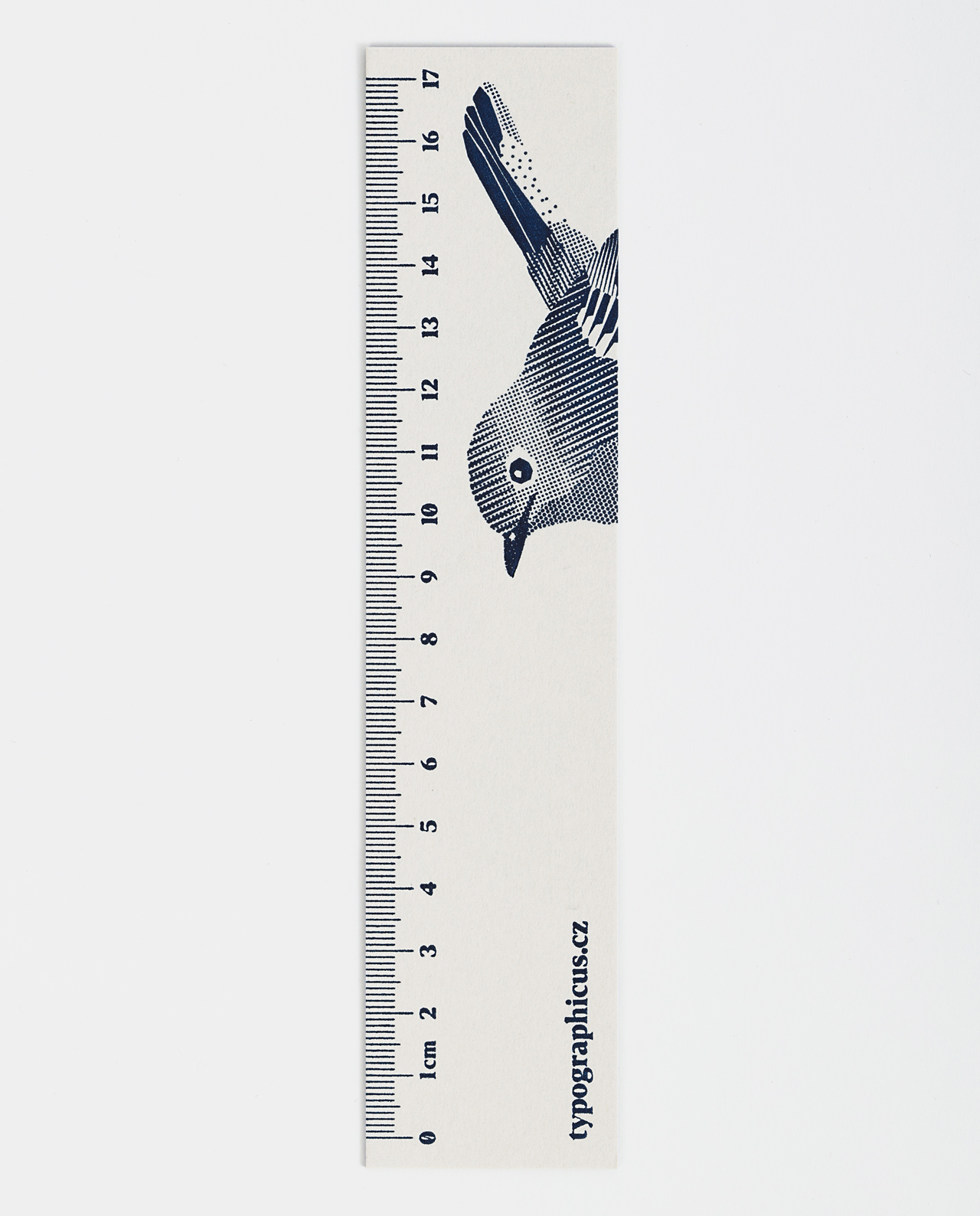 Záložka s motivem lejska malého, tištená klasickým knihtiskem kovovou matricí.